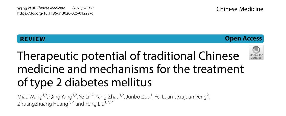 近日,在我校刘峰教授、黄壮壮教授团队的全程引领与深度指导下,由我校与陕西中医药大学共建的“陕西省研究生联合培养示范工作站” 联合培养的硕士研究生王苗,以第一作者身份在国际知名学术期刊《Chinese Medicine》(影响因子 5.7,JCR Q1 区)发表题为《Therapeutic potential of traditional Chinese medicine and mechanisms for the treatment of type 2 diabetes mellitus》的综述性研究论文。团队凭借深厚的学术积淀与前沿的研究视野,为该论文的选题设计、机制分析及成果凝练提供了关键支撑,最终促成此项高水平成果的发表。该成果不仅充分彰显两校研究生联合培养的高质量育人成效,更为我校中药学学科内涵建设与专业硕士点发展注入强劲动能,是校际协同创新与产教深度融合的又一重要突破。